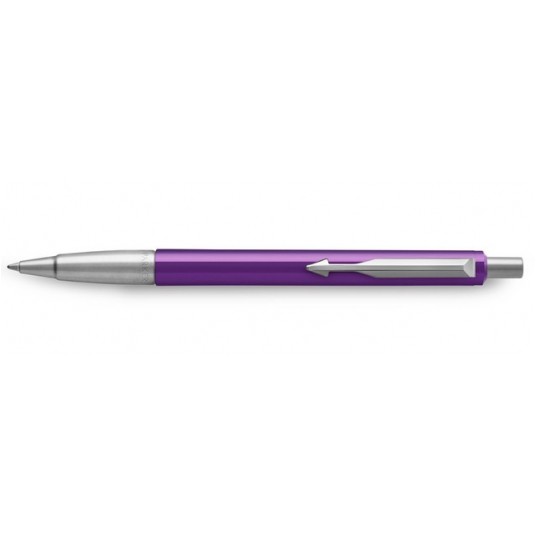 Długopis Parker Vector został zaprojektowany z bardzo mocnych materiałow, dzięki czemu jest trwały i przyjemnie się nim pisze. Długopisy te są bardzo lekkie i smukłe, cechują je żywe kolory oraz solidne wykończenie. Korpus pokryty został błyszczącym fioletowym lakierem, wykonany został z błyszczącej odpornej na zarysowania żywicy. Jest wyposażony w mocną część przednią ze stali nierdzewnej dla dodatkowej trwałości, którą można grawerować. Jego lakier jest odporny na zarysowania.